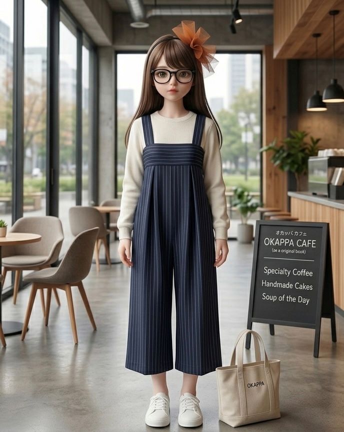 かなりワイドなサロペットだけど、縦長効果にも一役買ってくれそうです。