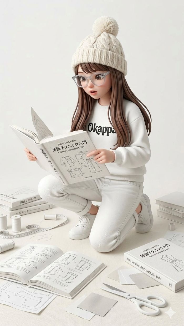 この本に載っているお洋服は、ほとんど白い生地で作られています。