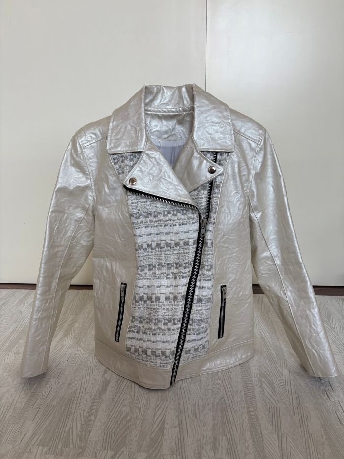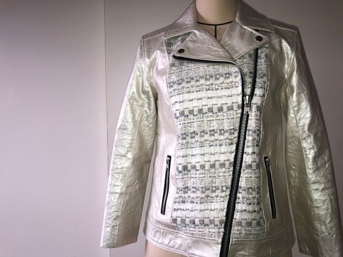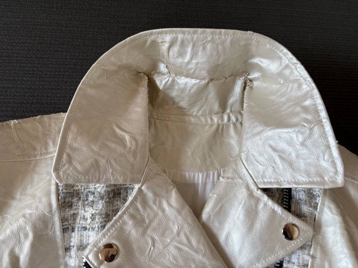 組み合わせる生地も同色系にしたくて行き着いたのが、ワッシャー加工されたプラチナホワイトの素敵なフェイクレザー。