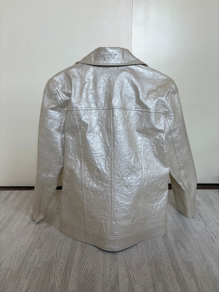 10年以上前に作ったこのライダースジャケットもその一つ。硬すぎて自立しています。